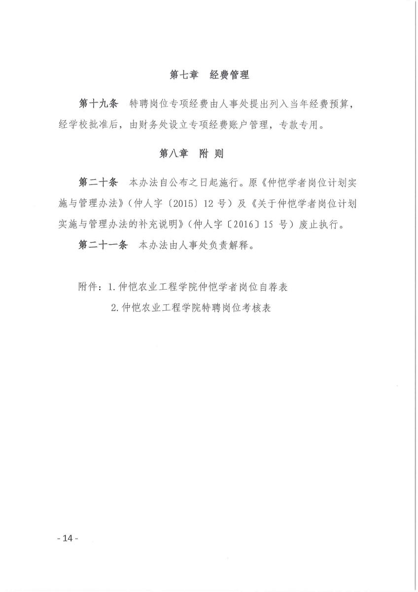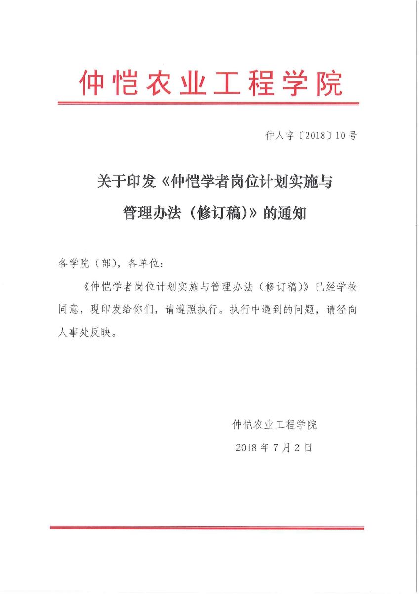 关于印发《仲恺学者岗位计划实施与管理办法(修订稿)》的通知 (仲人字[2018]10号)