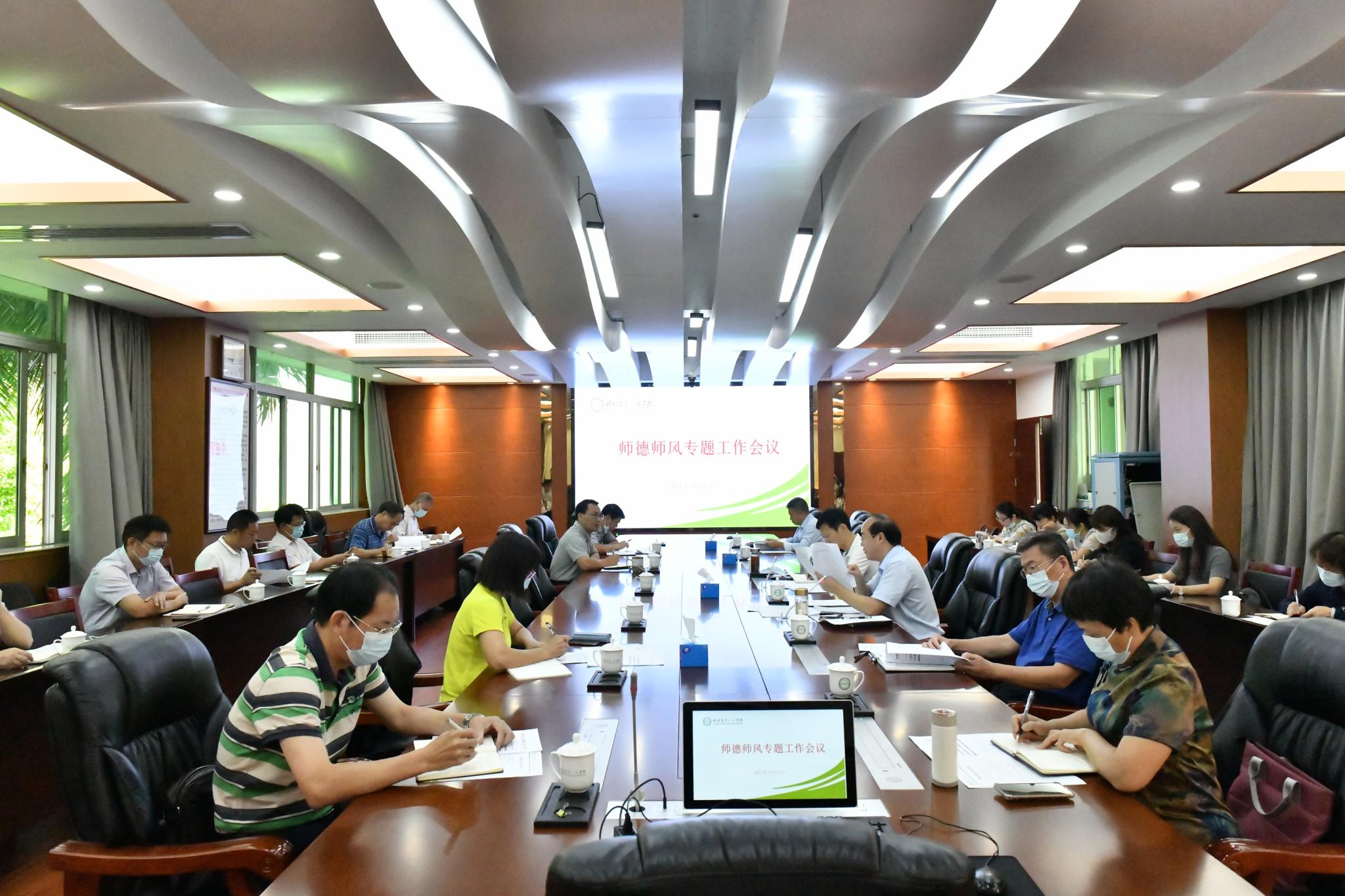 为加强学校师德师风建设,落实立德树人根本任务,10月12日上午,海珠校区教学楼409会议室召开师德师风专题工作会议,副校长朱立学、党委教师工作部、组织部、宣传部、纪委监察室、教务处、科技处、研究生处、财务处、工会、学生处、外事处等部门负责人及各二级党组织书记参加会议。会议由副校长朱立学主持。