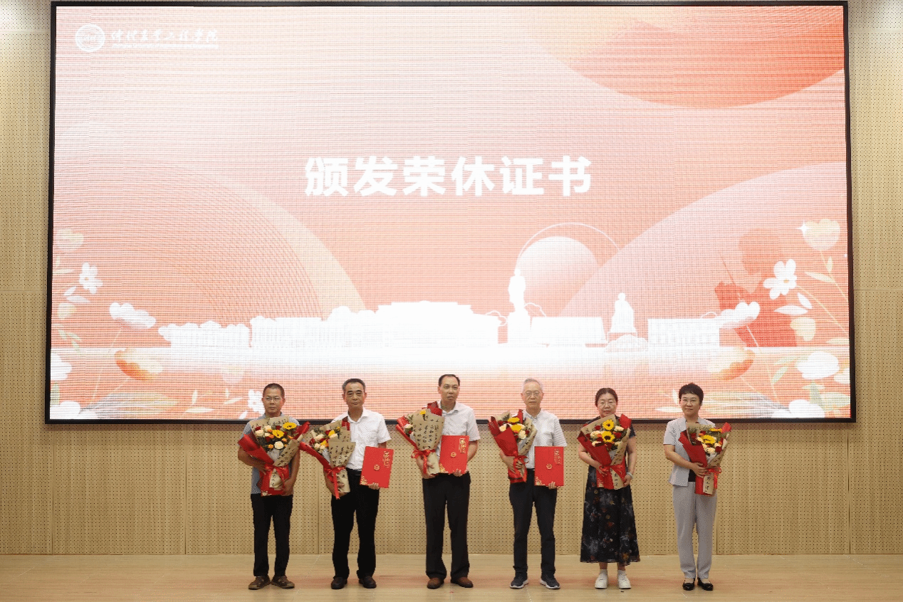 半世耕耘在杏坛,种得桃李满天下。大会现场举行了教师荣休仪式,翟雪梅为荣休教师代表颁发荣誉证书,学生代表为荣休教师代表献上花束,致以崇高敬意。