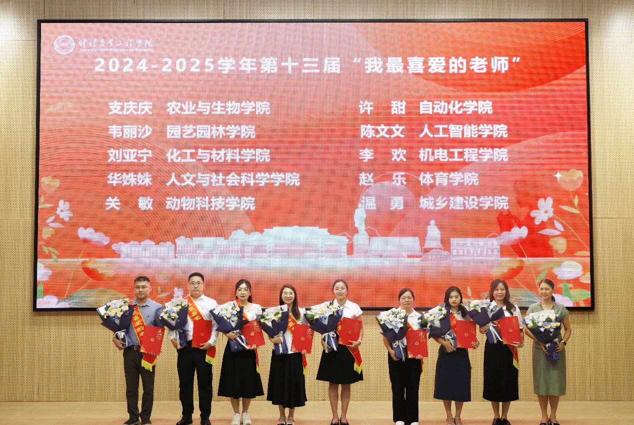 周砖、张伟丽、朱鹏先三位老师分别作为获奖教师代表、荣休教师代表和新入职教师代表发言。周砖表示人并非生来成功,需始终怀揣着求对教学的敬畏和热爱,用实际行动践行教育家精神。张伟丽分享了作为退休教师的感恩与不舍之情,她鼓励青年教师积极投身乡村振兴实践,将个人发展融入国家战略,并表达了对学校未来发展的美好祝愿。朱鹏先表示学校的温暖与信任,让他拥有了深耕教学,投身科研和融入集体的动力,未来将以饱满的激情,昂扬的斗志投入到职业生涯中。