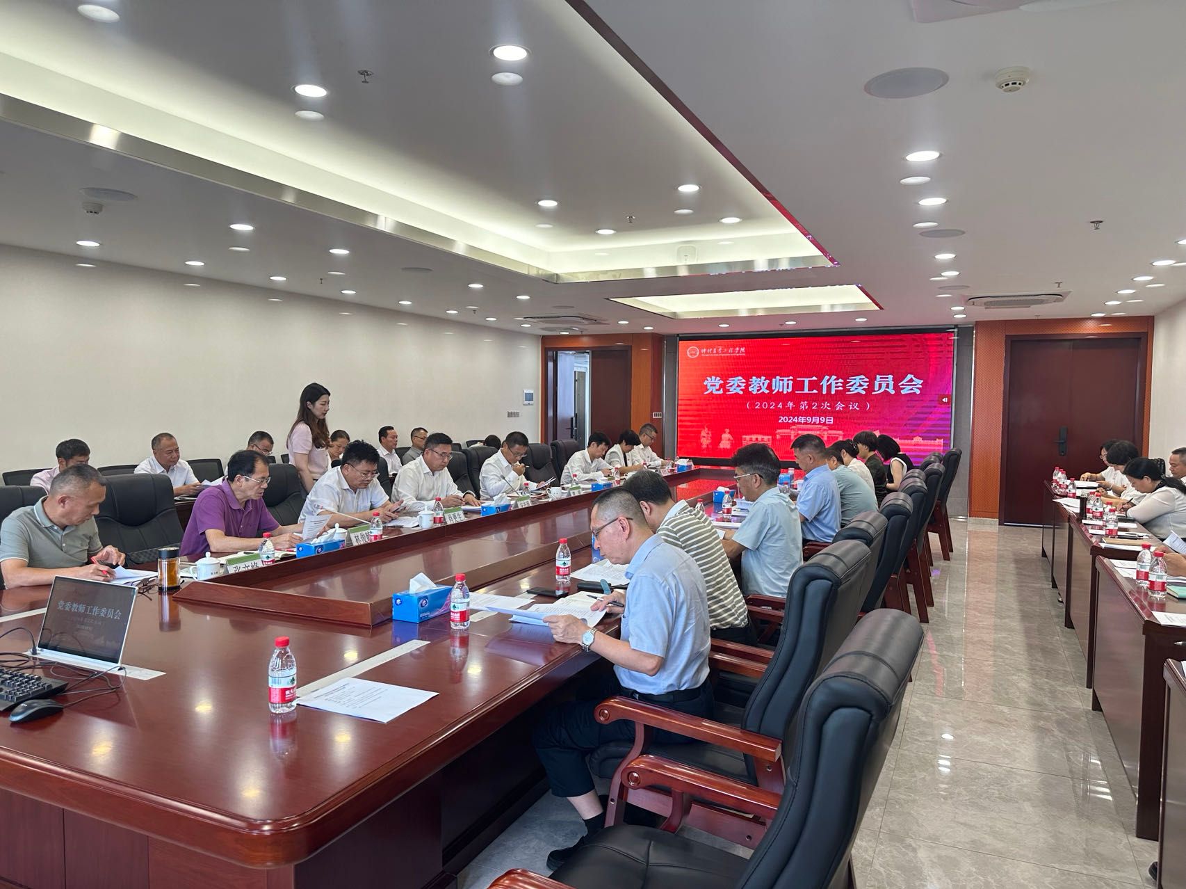 教师是立教之本、兴教之源,强国必先强教,强教必先强师。为大力弘扬教育家精神,加强新时代高素质专业化教师队伍建设,进一步营造尊师重教良好氛围,9月9日下午,学校党委教师工作委员会在白云校区德新楼600会议室召开2024年第2次全体会议,学校党委书记宋垚臻主持会议并讲话,学校党委副书记、校长廖 明,学校党委常委、副校长肖更生、林俊睦、朱立学、张文峰以及党委教师工作委员会成员参加会议。